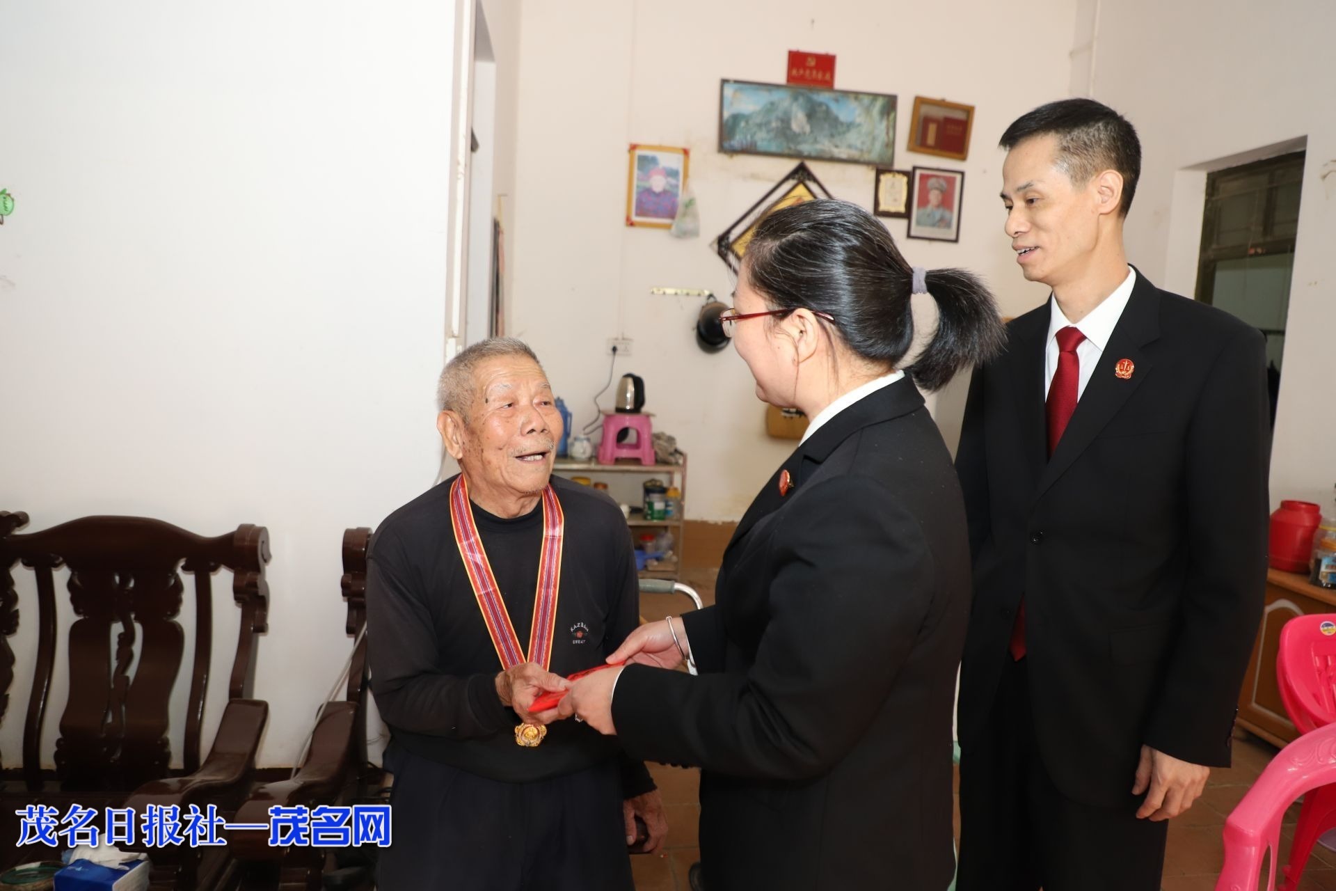法院人员给张连兴送上慰问金。茂名日报社全媒体记者 吴昊 摄