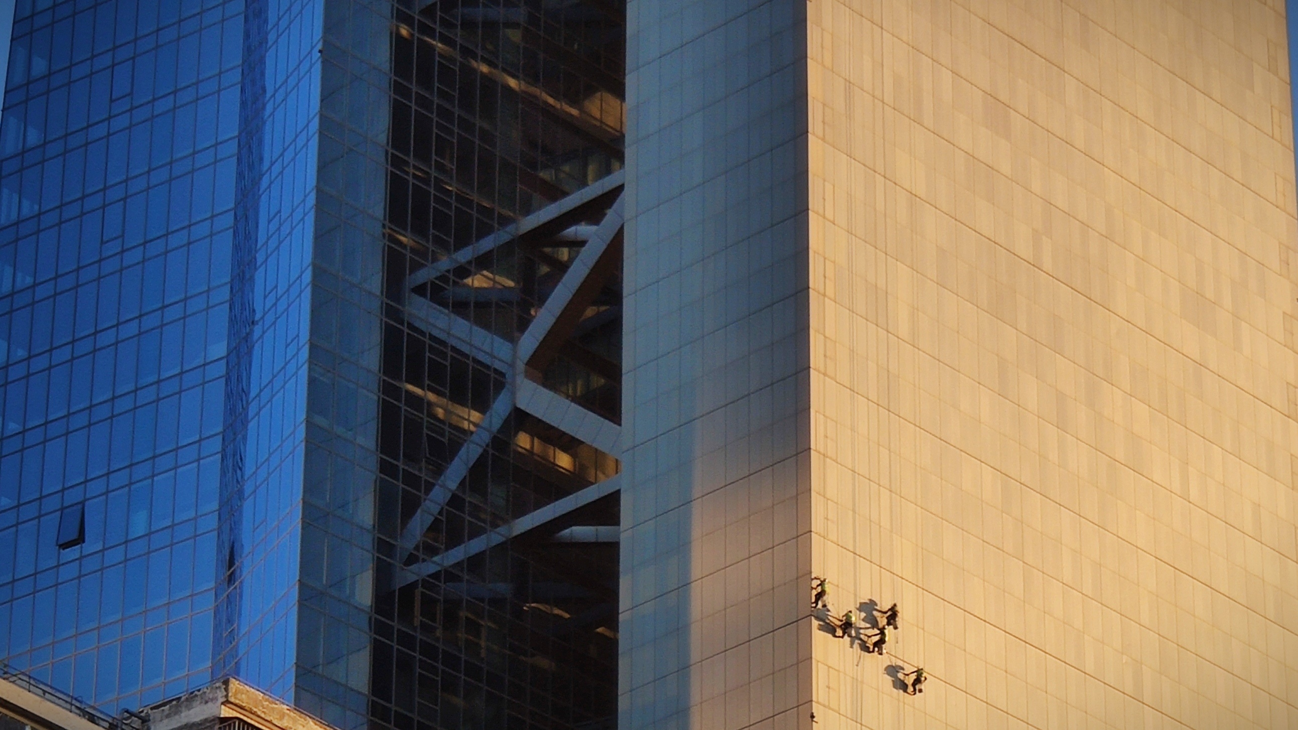 简介:汉京中心大厦坐落于深圳市南山区,由著名建筑师汤姆梅恩设计。它的建筑特点是,一反常规设计思路,将核心筒与办公区域脱开设计,人们在进出办公区域的时候,会经过一段空中连廊,此种体验不是一般高楼大厦所有的。作为一座钢结构大楼,其体量之大让人震撼,恰巧今日路过,拍下“蜘蛛侠”们辛勤劳动、清洗幕墙的照片。通过对比可靠股票配资,也可以看出建筑的体量之大,一定程度上反映出深圳经济特区建立以来的经济实力。